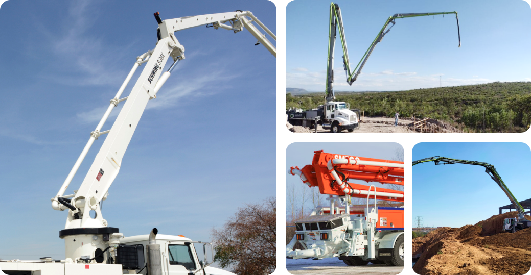 Encuentra bombas pluma Schwing Stetter diseñadas para bombear hormigón y otros materiales similares en obras de construcción.